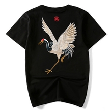 EA夏季新款中国风潮牌复古民族风纯棉刺绣仙鹤男装短袖T恤男宽松