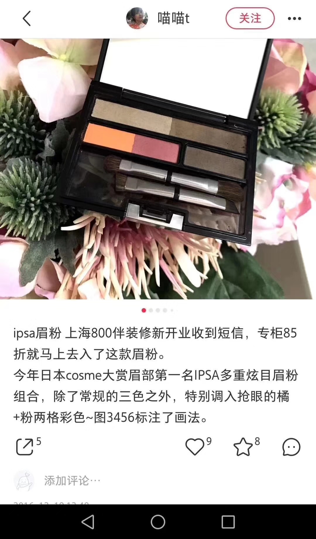 IPSA茵芙莎五色眉粉 防水防汗持久不脱色眉笔眉粉眉刷三合一,根据各人发色或风格,打造自然具有立体感的眉状造型眉粉。 通过搭配的五种色调与眉刷,打造专业自然的眉毛。专柜290,折后223